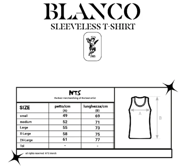 - 40 % Off 20,00 €Il prezzo originale era: 20,00 €.12,00 €Il prezzo attuale è: 12,00 €.Fuori ora il nuovo merch ufficiale di Blanco Canottiera a costine aderente 100% cotone con stampa serigrafica Consegne previste ion 3/5 giorni lavorativi Lavaggio consigliato 30° al rovescio I prodotti ufficiali di Blanco puoi trovarli qui o all’interno dei suoi live Per info:[email protected] Nts merch e Blanco suggeriscono : https://isoladellerose.store/